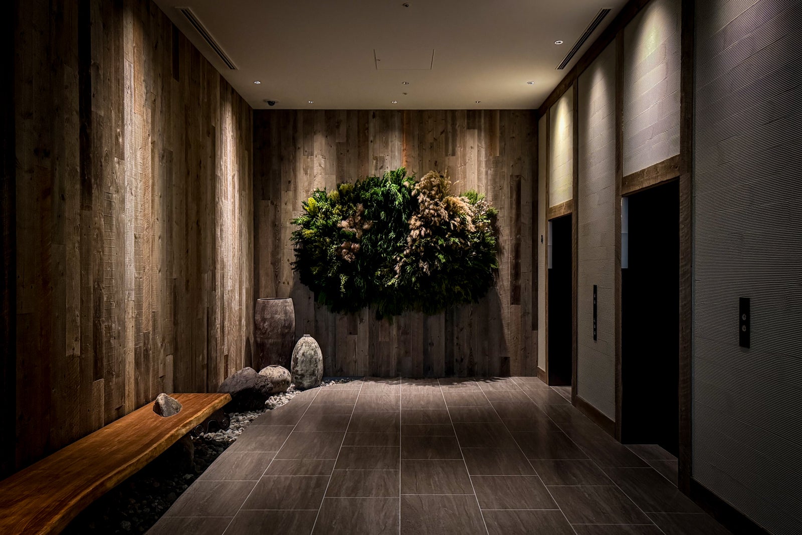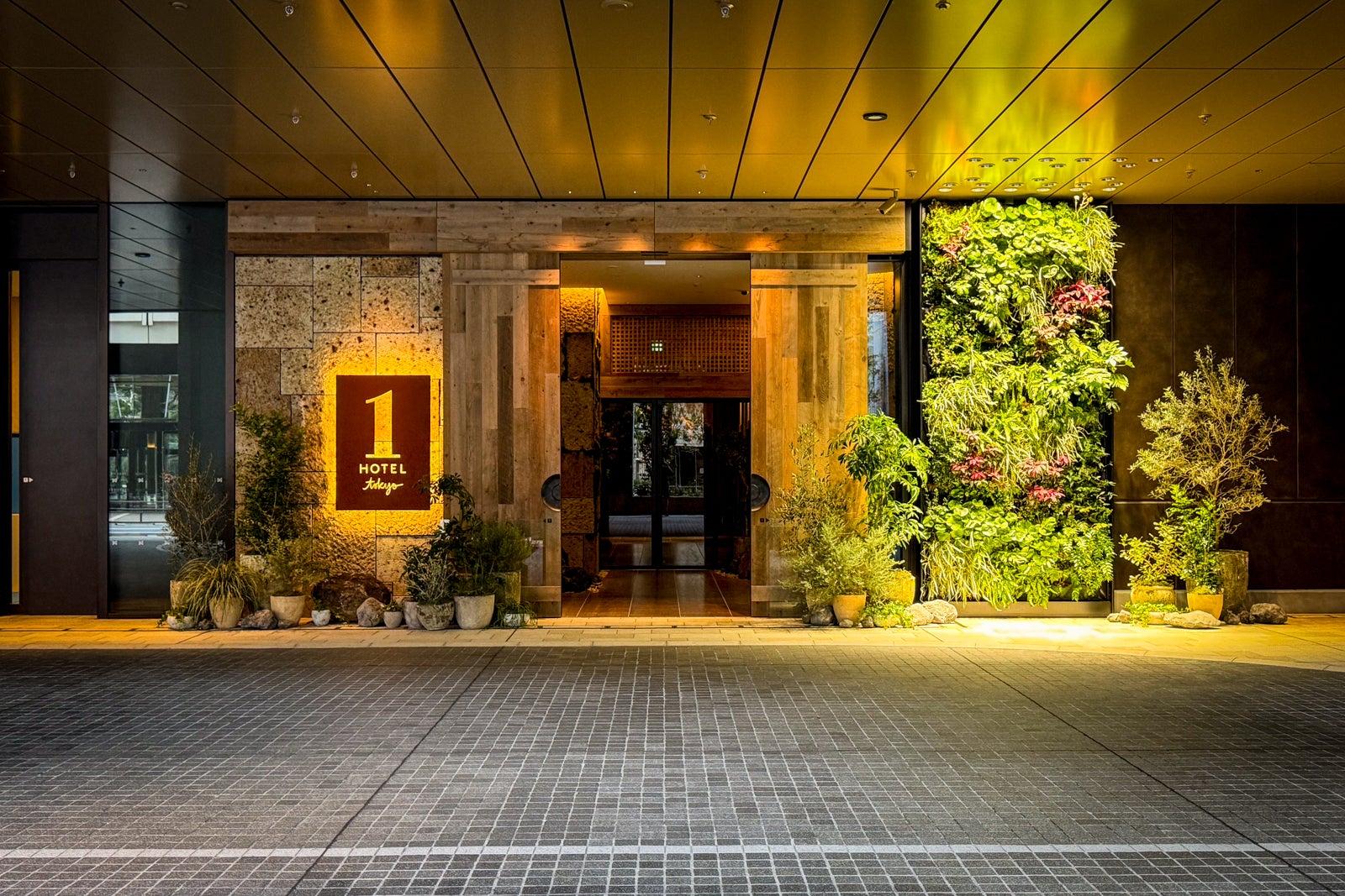 Pulling up to the new Akasaka Trust Tower, you’d be forgiven for thinking you’d arrived at merely another soaring office tower in one of the city’s busy business districts. But a closer look reveals signature 1 Hotel branding — a giant “1” made from beams of salvaged wood, a backlit distressed-metal sign and a small reception area with carefully placed potted plants and Oya stone boulders that mirror those of the stonework of the nearby Imperial Palace’s moat.