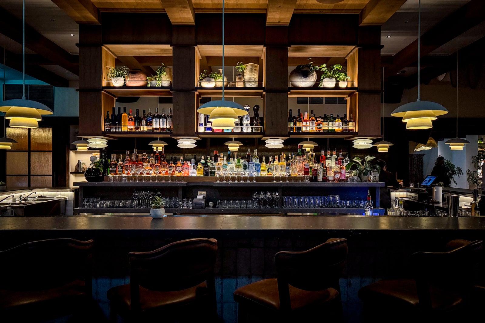 Across the lobby from NiNi, Spotted Stone is open from the afternoon through the evening. The main draw here is the list of nearly 100 Japanese craft gins, which make their way into classic-inspired but original cocktails like the tangy Yuzu Revival with Yatsu Boshi yuzu gin, La Quintinye Rouge vermouth, Pierre Ferrand curacao, “pseudo” lemon bitters and an absinthe rinse ($16.50).
