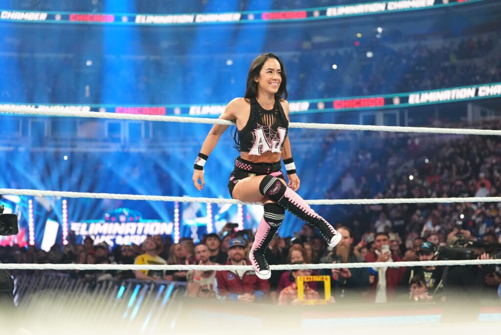 CHICAGO, ILLINOIS – FEBRUARY 28: AJ Lee enters the ring