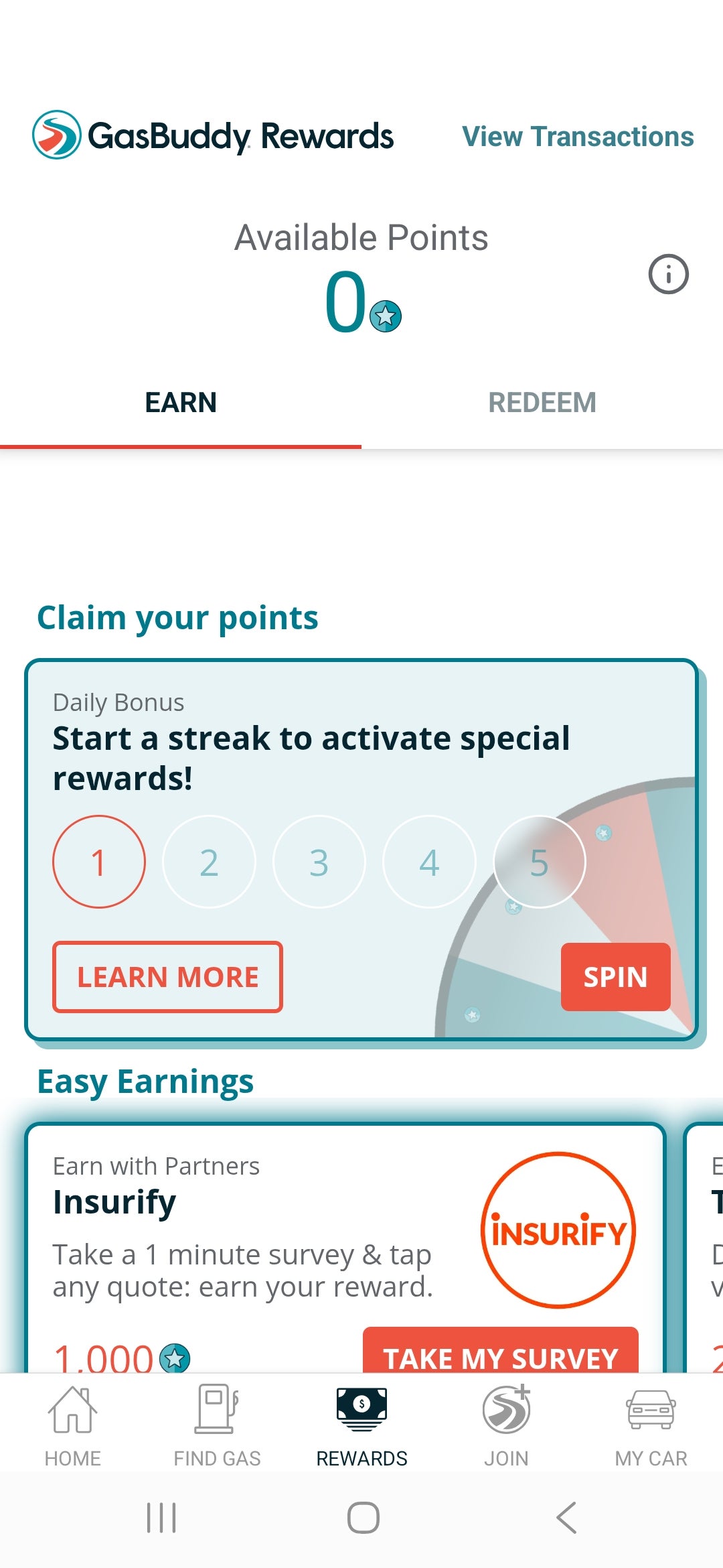 Another part of the app, GasBuddy Rewards, lets you earn points by taking surveys, playing games, watching videos, dining out, snapping receipts and more.
