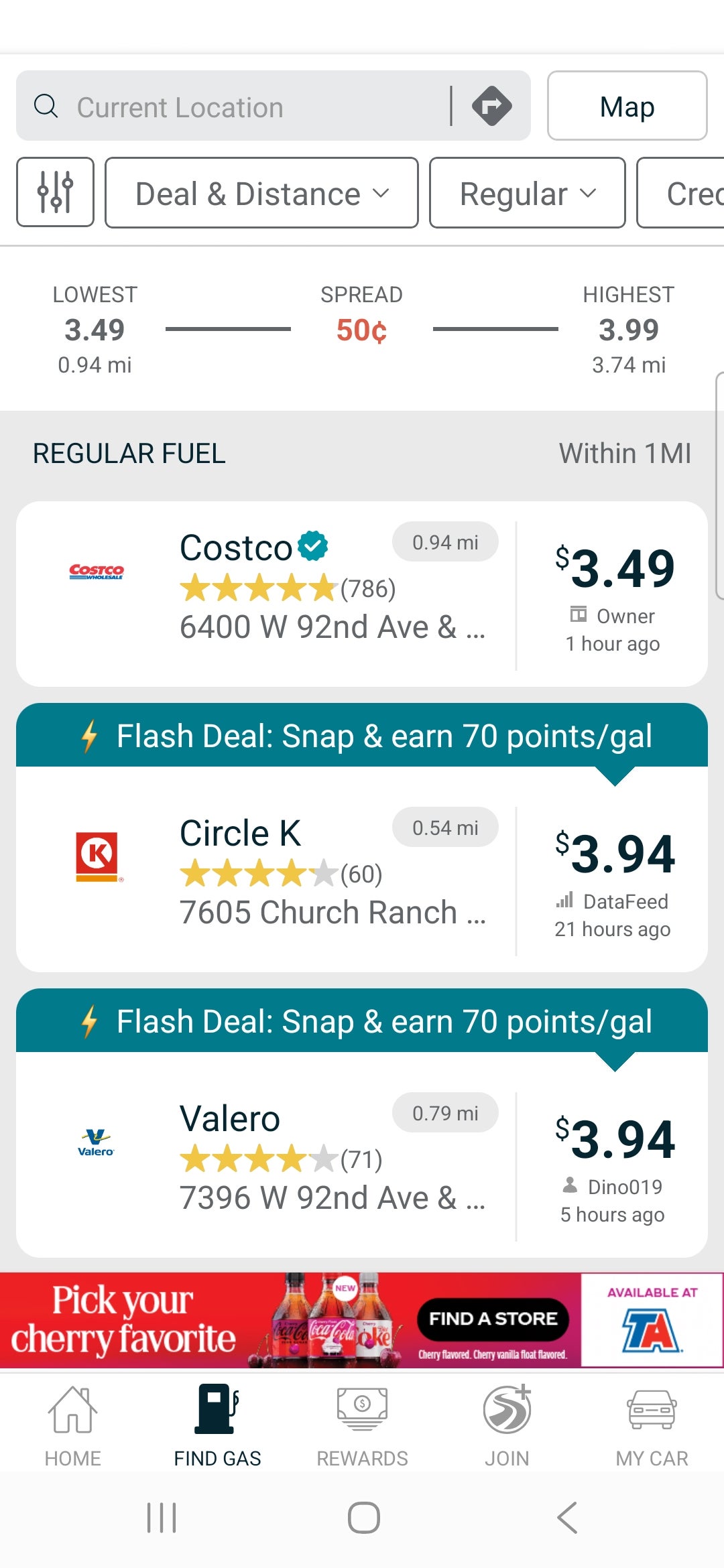 GasBuddy will also alert you to flash deals, which you can activate in the app. Some of these require having a membership with the gas station, like this one through Fuel Rewards.