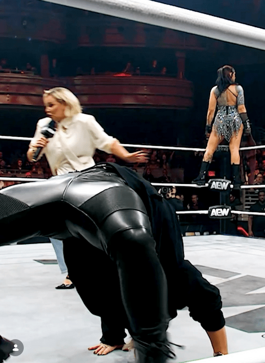Statlander graced the ring during Collision (Feb. 7, 2026) for a promo to say her piece. Before Statlander had a chance to speak, the Triangle of Madness ambushed her. Thekla, Julia Hart, and Skye Blue wore their burglar outfits for the sneak attack. Renee Paquette saw it coming and scurried to safety. Thekla speared Statlander, then Hart and Blue held Stat down to the mat for Thekla to whip her. Statlander took several lashes from Thekla’s belt. No matter which stipulation Statlander chooses, the end will be toxic. Thekla stood with the title over the champ. This is a brutal scene. Sound on to hear the snap of belt to back.