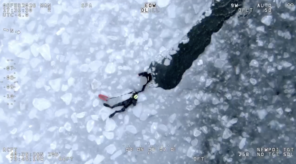 Video from the New York Police Department shows the rescue happening, as members of the Scuba Team, Aviation Unit, Emergency Service Unit and the New York City Fire Department responded.